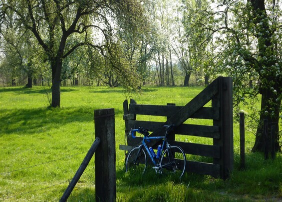 Aan overkant brede sloot zag ik uitgeworpen hengel, een net tegen de zon, klapstoel en elektrische fiets met aanhangkar. Spoedig zouden Rosa en ik daar langslopen, want wij lopen daar rondje.