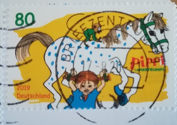 Heb inmiddels 1292 kaarten ontvangen! Deze week voor eerste keer kaart dubbel met afbeelding van fiets. Achterkant kaart was grotere verrassing: zat postzegel van Pippi op.