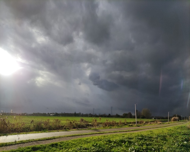 Kwartier later regende het katten en koeien.