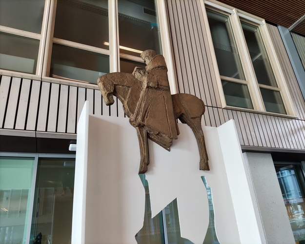 Trof Astrid buiten bij bieb. Zonder gips en met grijns. ‘Ik kan weer armpje drukken, dus zeg maar wanneer je komt.’